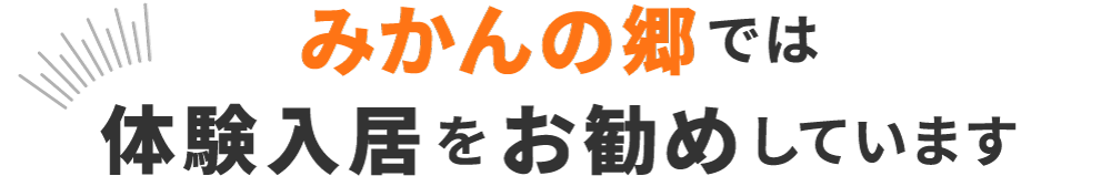 「みかんの郷」では、ご入居をご検討されている皆様に、当施設での実際の暮らしを肌で感じていただくための体験入居をご用意しております。
